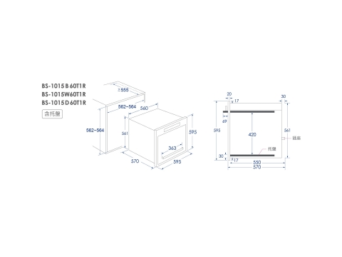 • 外觀尺寸:W595 x H595 x D570 mm