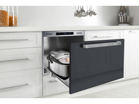 可設計於櫥櫃下方或中島吧檯下方,靠近腰部位置,更符合人體工學,拿取內部電器更為方便。