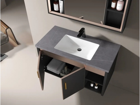 • 型號:KQ-S3014不鏽鋼浴櫃/J100(亮光亞曼尼灰岩板)