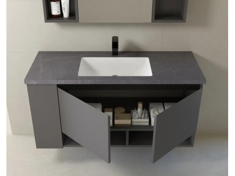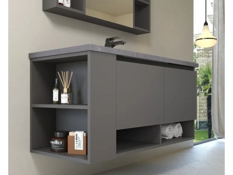 • 型號:KQ-S3211不鏽鋼浴櫃(左)/J120(亮光亞曼尼灰岩板)