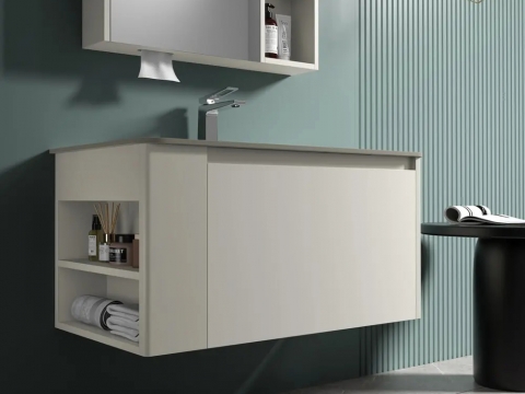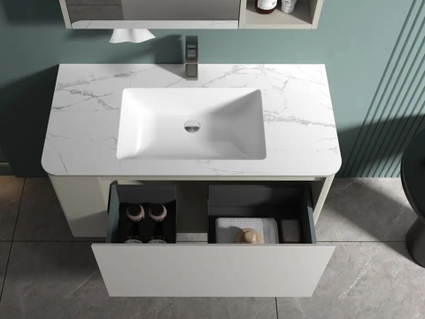 • 型號:KQ-S3411不鏽鋼浴櫃(左)/G100R(寒江雪岩板)