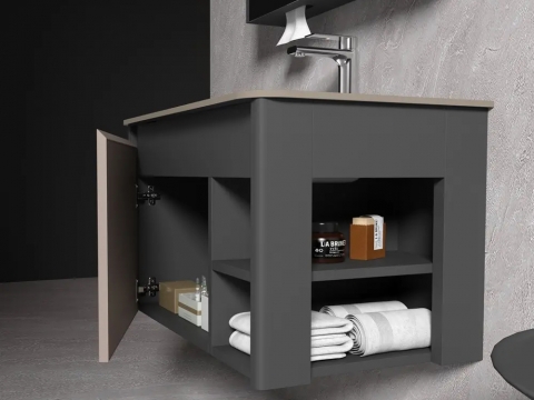 • 型號:KQ-S3582不鏽鋼烤漆浴櫃(右)/9580(陶瓷盆)