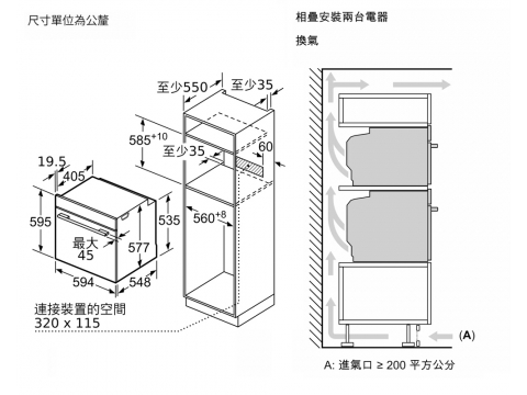 安裝尺寸:H585-595 x W560-568 x D550 mm