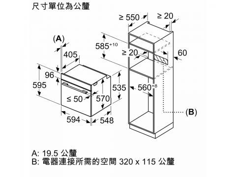 安裝尺寸:H585-595 x W560-568 x D550 mm