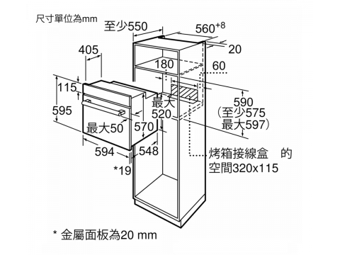安裝尺寸:H585-595 x W560-568 x D550 mm