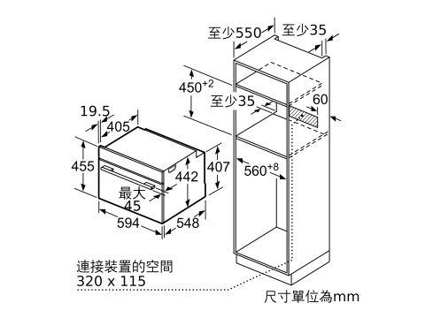 安裝尺寸:H450-455 x W560-568 x D550 mm