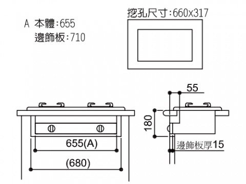 挖孔尺寸 :W660 × D317 mm