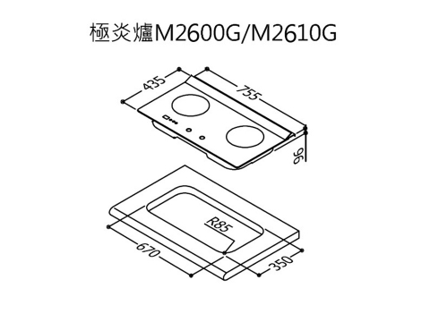 挖孔尺寸 :W670 × D350(R85) mm(適用W660~680 X D350~403 (R85)挖孔)
