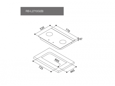 • 挖孔尺寸:W725 × D465(R85) mm(適用R85-R113圓角)