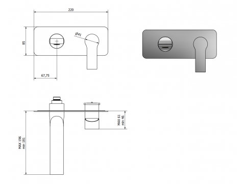 - 尺 寸:龍頭埋壁W22 x D7.5cm,出水長度 16.8cm