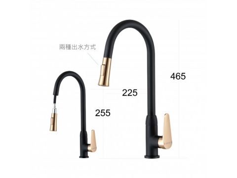 品名:PVD伸縮花灑檯面龍頭 黑色+玫瑰金