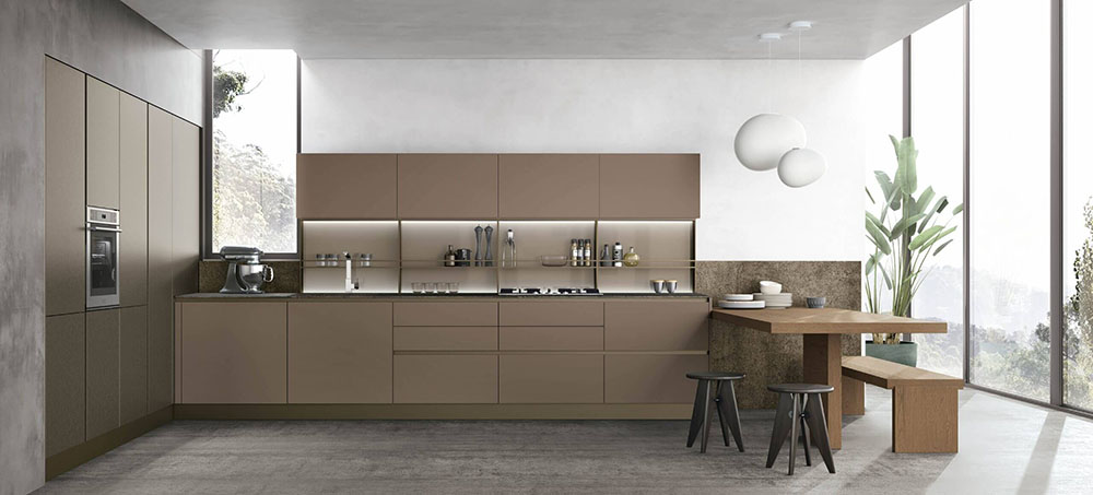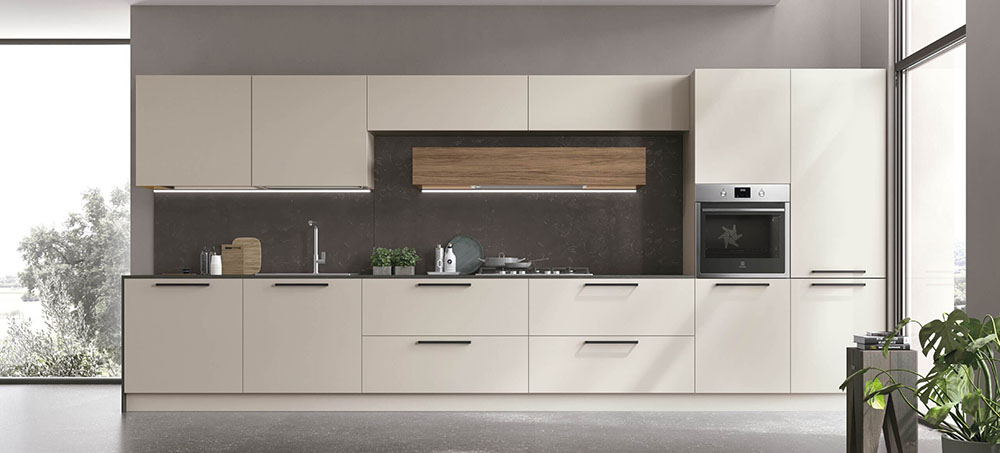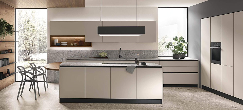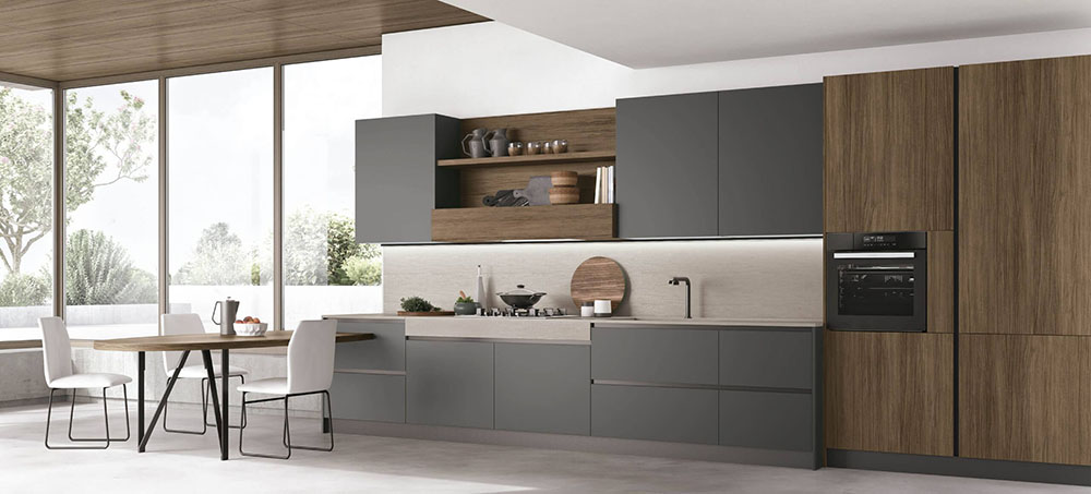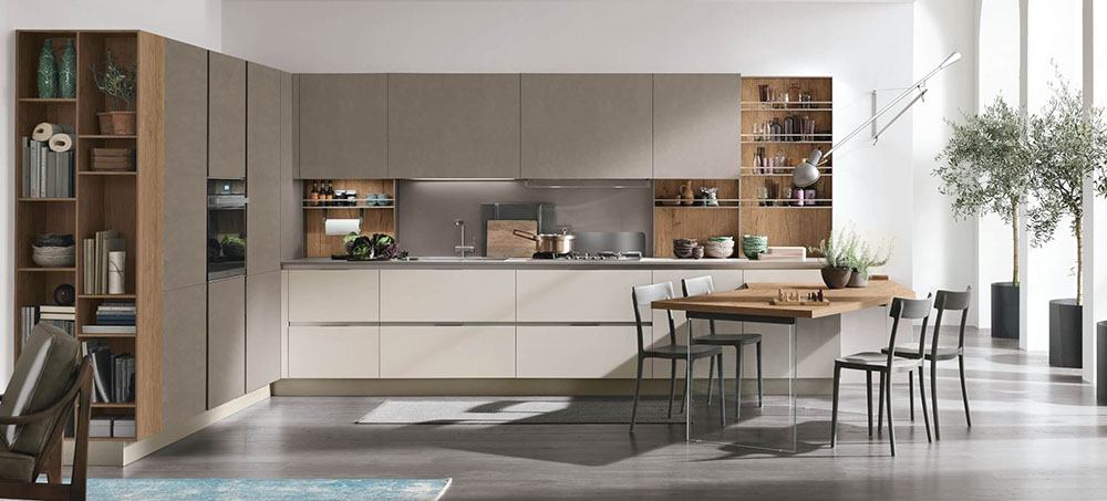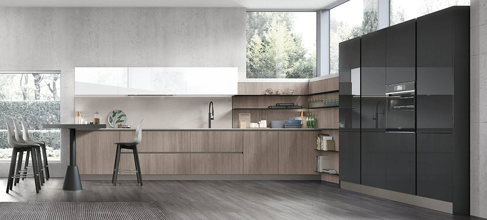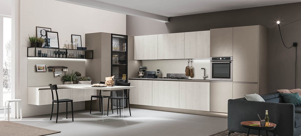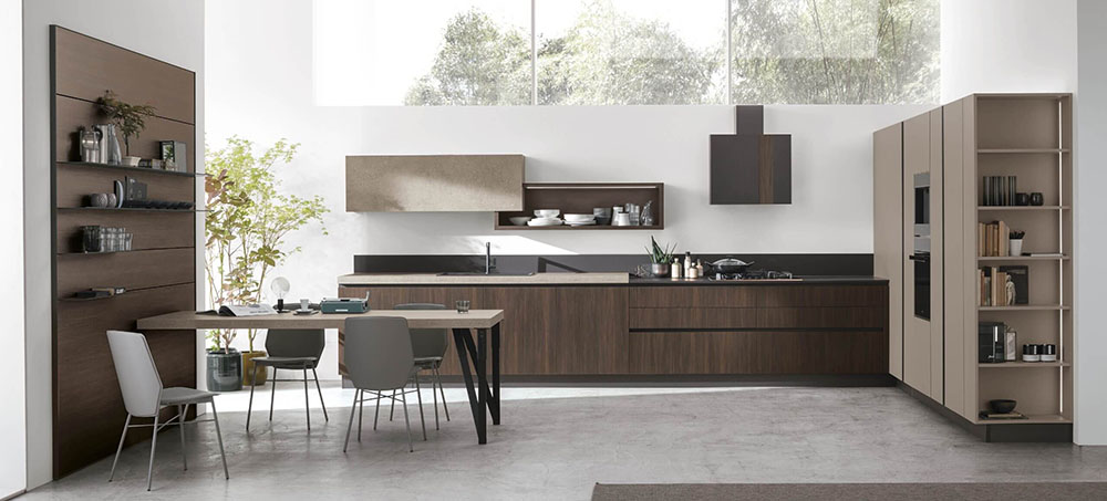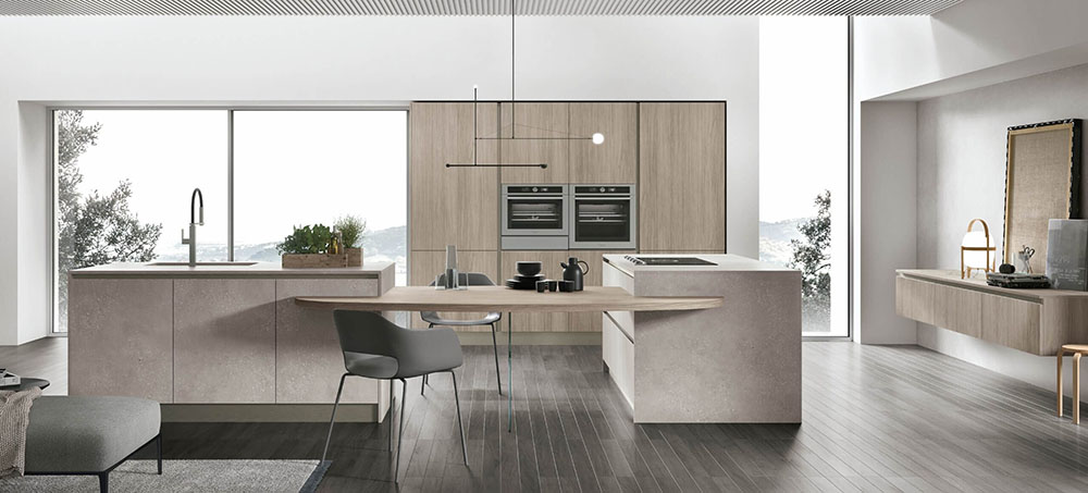 Natural 的主要特點是板條橡木門,它以五種色調表達了木材的真實紋路,反應出廚房家具融入現代生活。自然材料的魅力在於,結合了不斷進化的巨大模組化,為廚房系統帶來更大的元素深度和高度,提供最大的收納容量。