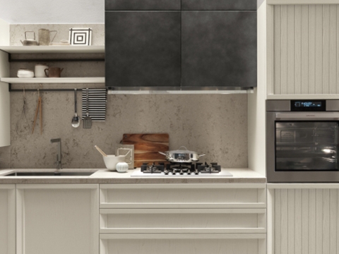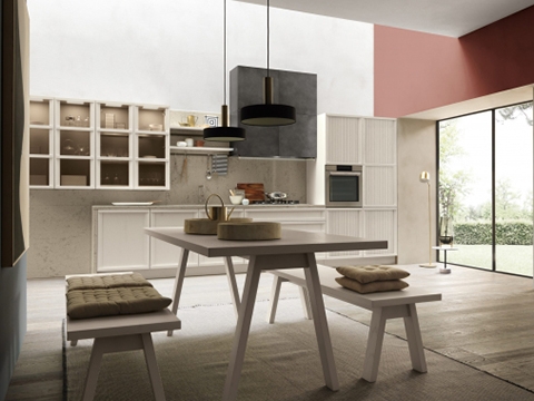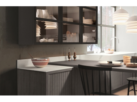 Tosca 最具特色的線條門板,水平線和垂直線融合形成完美平衡的形狀,門板的細長垂直線突出成就隱形把手造型,讓家居增添傳統的鄉村氛圍。