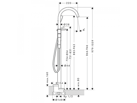 出水嘴長度: 220 mm