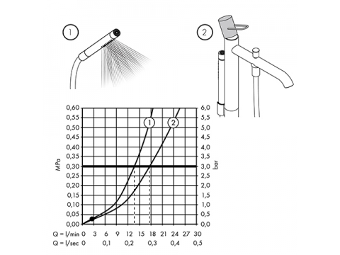3 bar 壓力下浴缸噴嘴的流量:18 公升/分