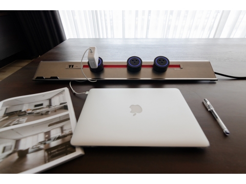 Eubiq 以線為概念有別於傳統插座點的設計,符合現代室內裝修設計的需求,能搭配任何的建材使用且均能完美結合,無一般定點式插座破壞整體美感的缺點。