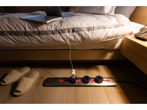 Eubiq 以線為概念有別於傳統插座點的設計,符合現代室內裝修設計的需求,能搭配任何的建材使用且均能完美結合,無一般定點式插座破壞整體美感的缺點。