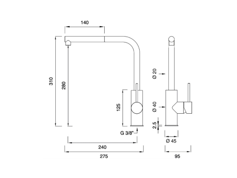 不鏽鋼L型廚房龍頭(伸縮)