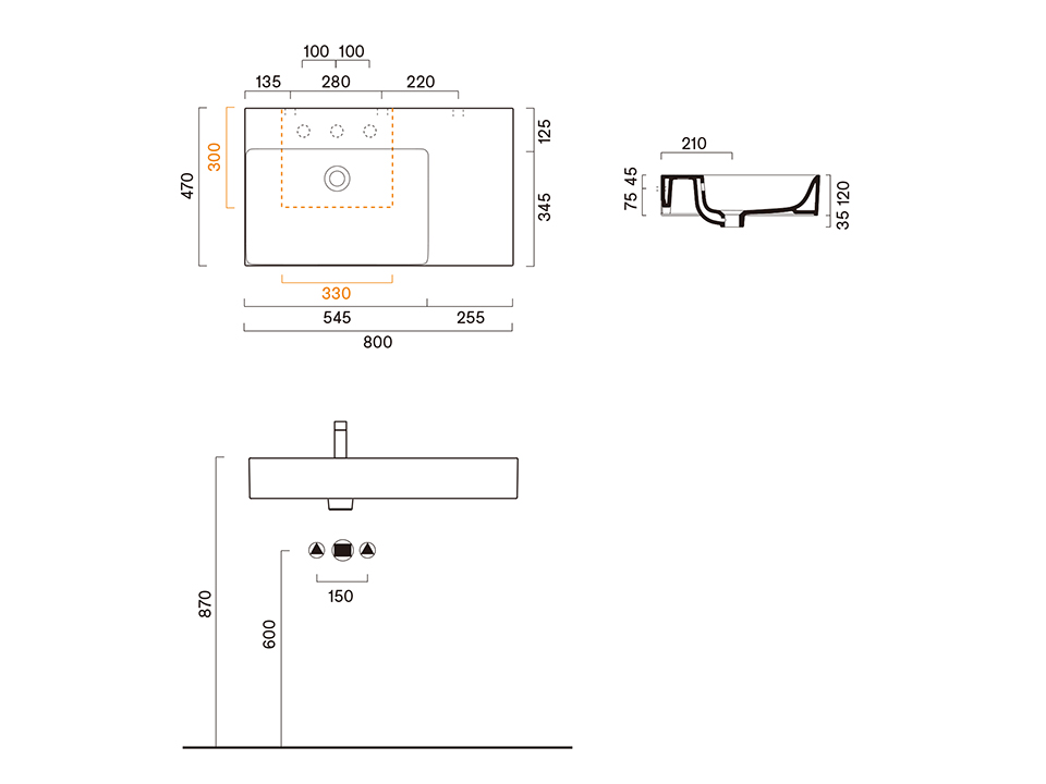 尺寸:W800 x D470 x H120 mm