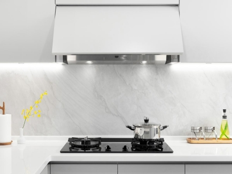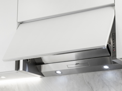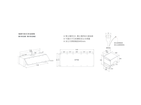 1. 請掀開門板,按下右邊開關分別是一檔,二檔、 三檔、 照明燈,即可啟動排油煙機。